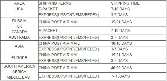 2.We show the shipping time to the customers, so do not leave us negative feedback if your package arrived late, which is caused by the shipping company.
