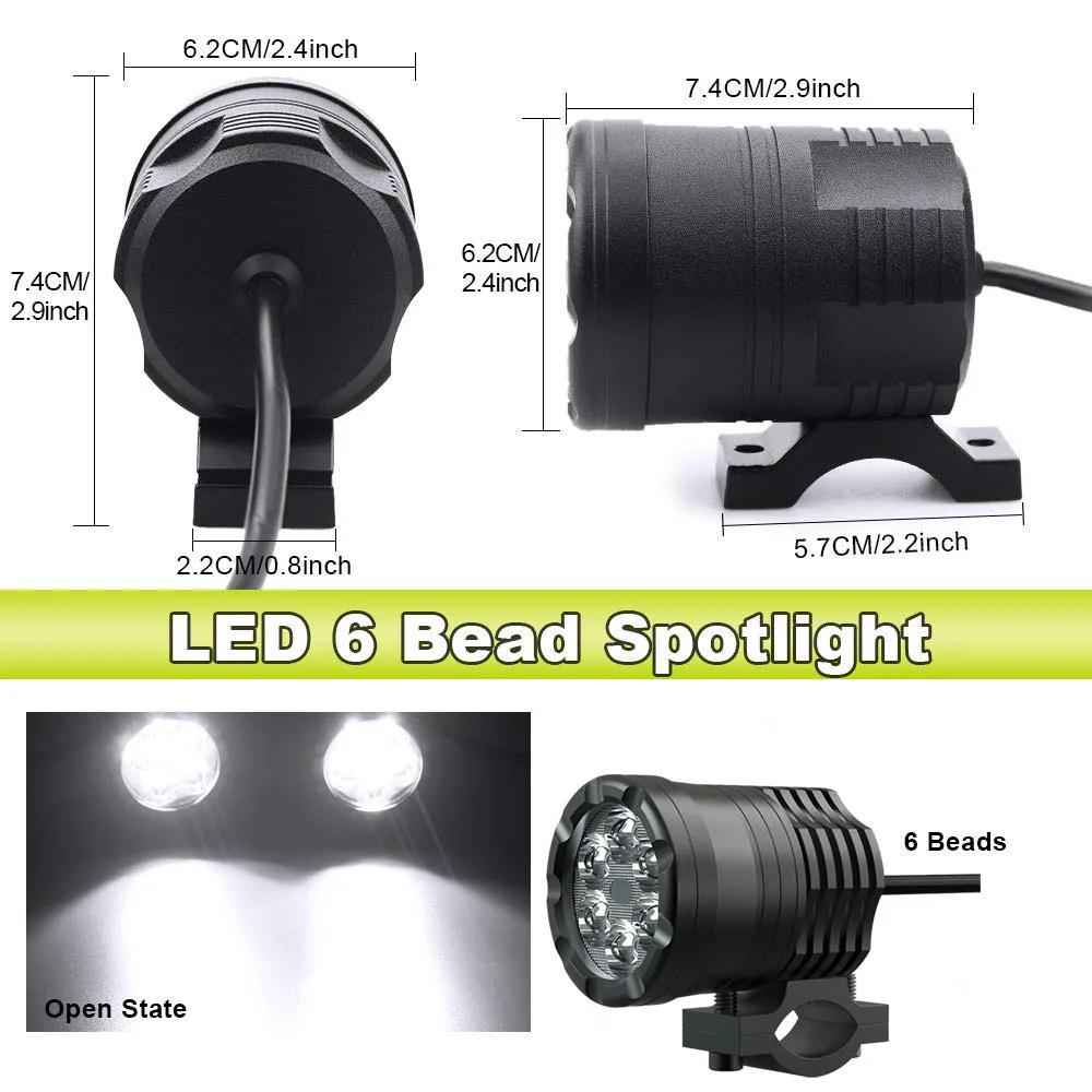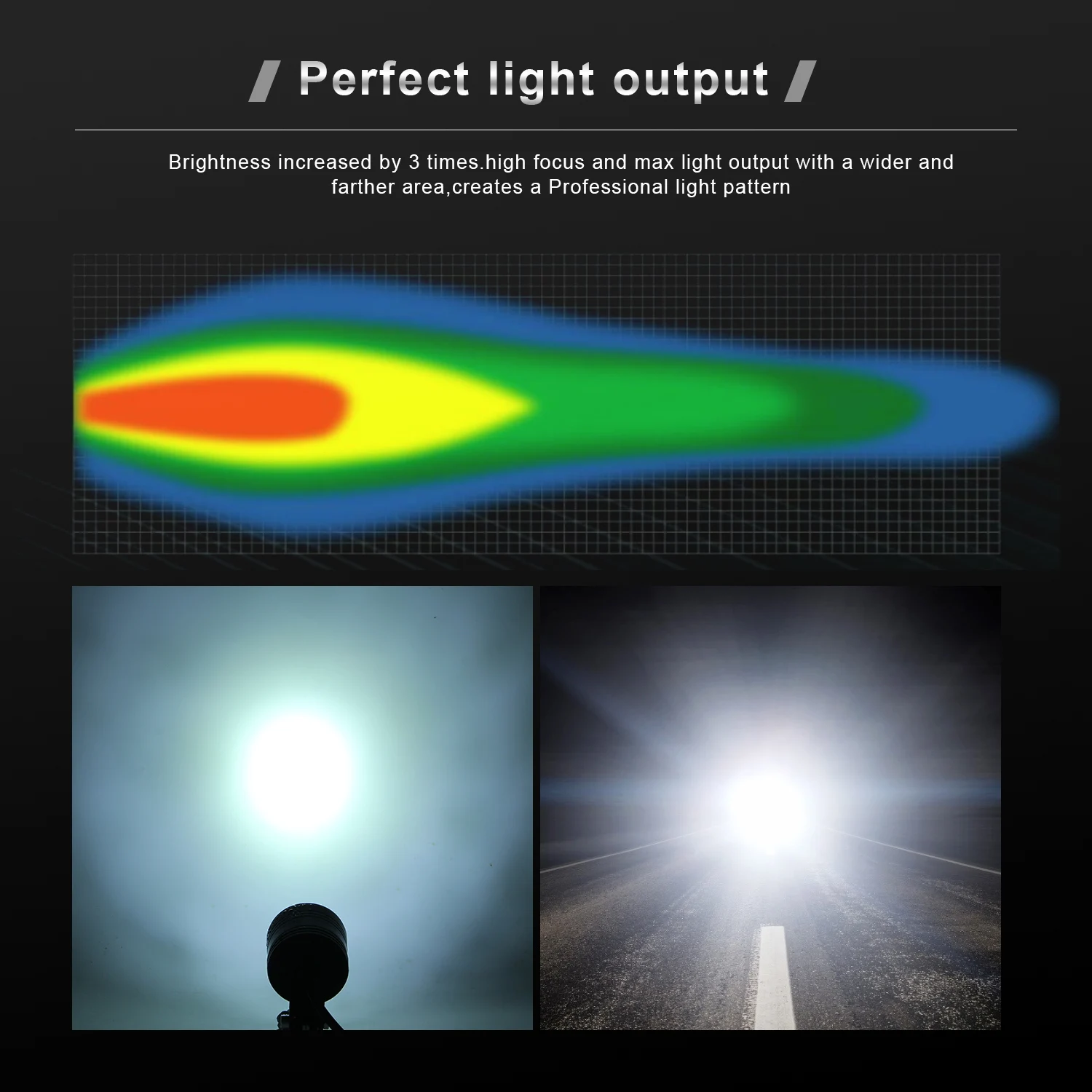 LED motorcycle headlights use 6pcs of light beads,60W(6pcs*10W intense CREE LED/each bulb),long range focused beam with 6000LM allows you to see far away, extremely bright even in the daytime.