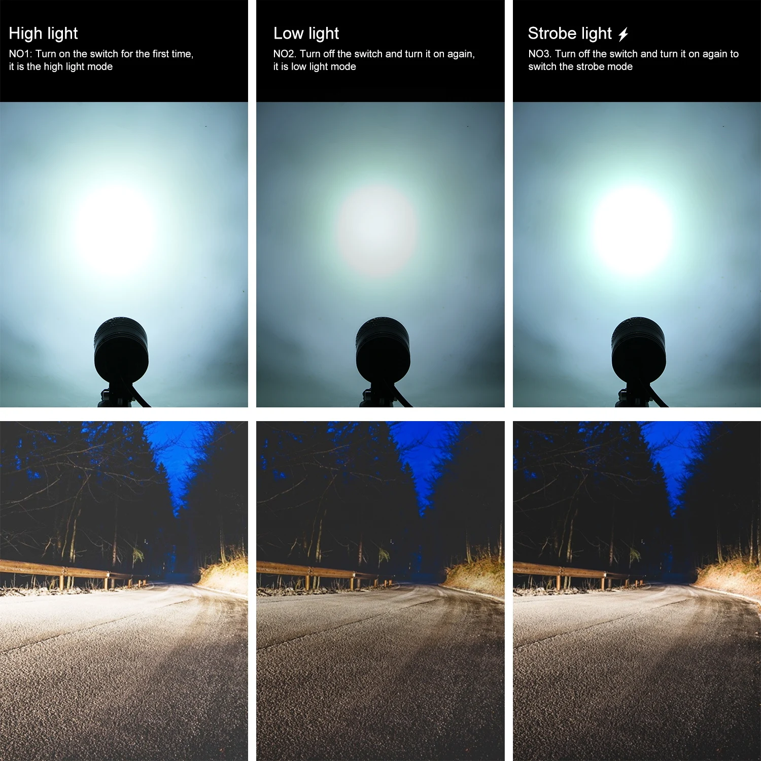 - Features 3: Three modes: high brightness, strobe light mode, low brightness mode.