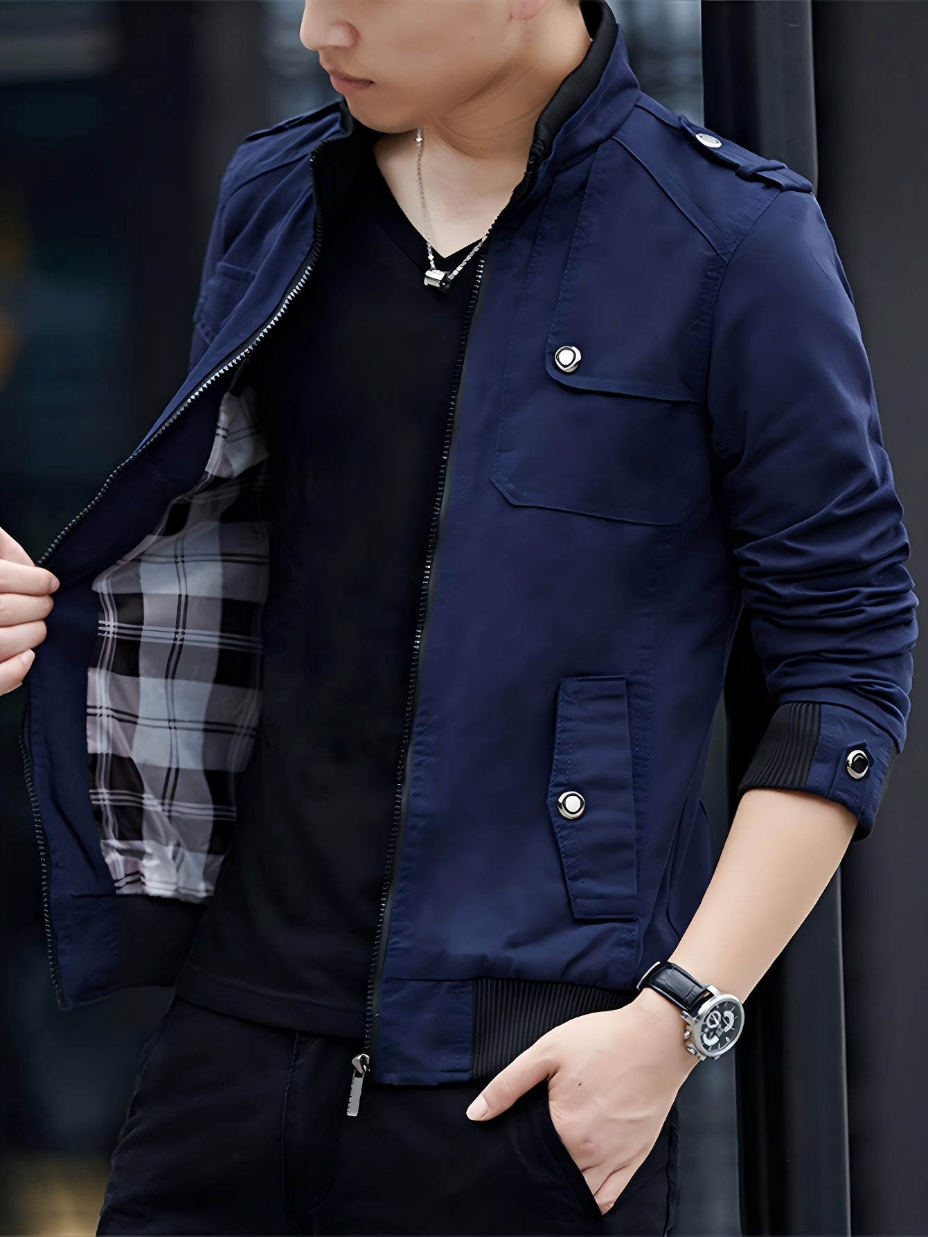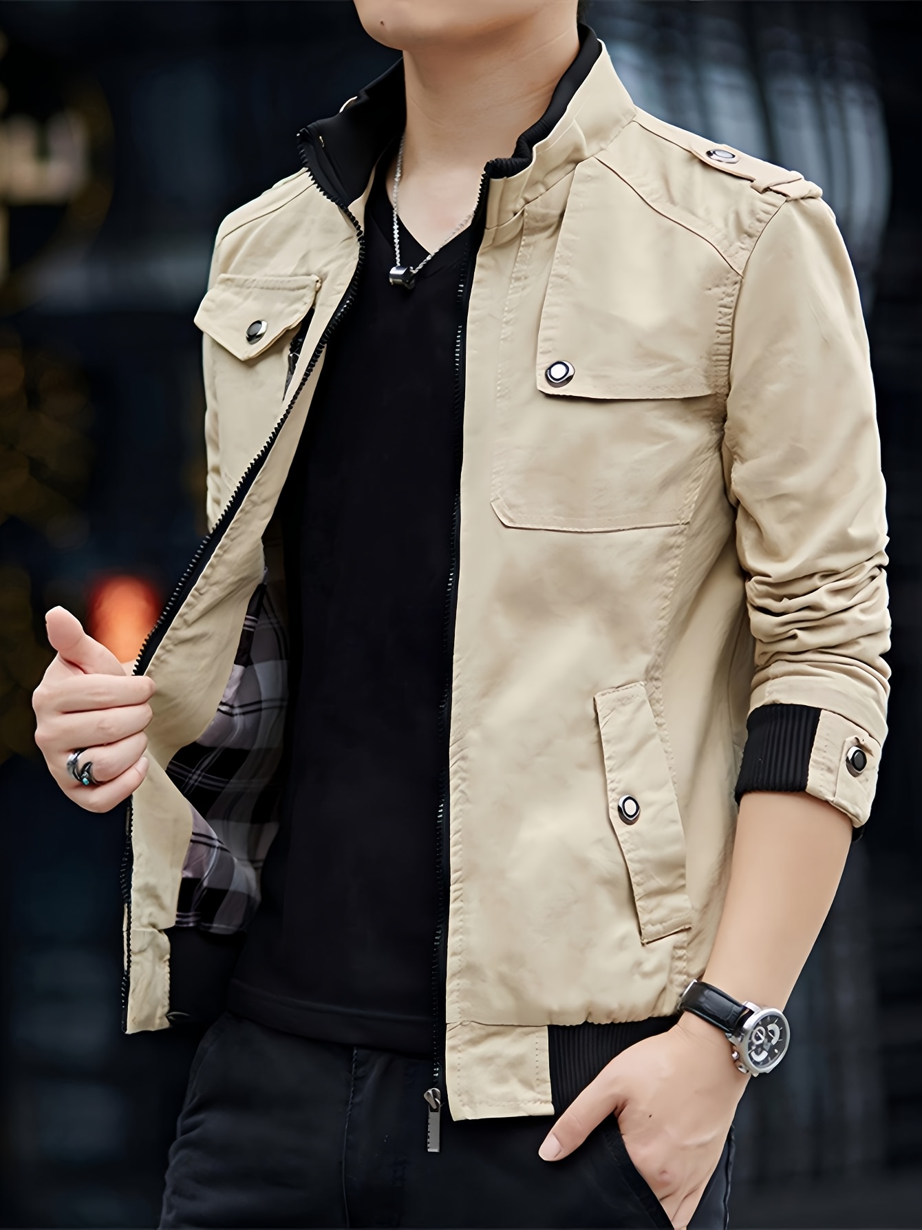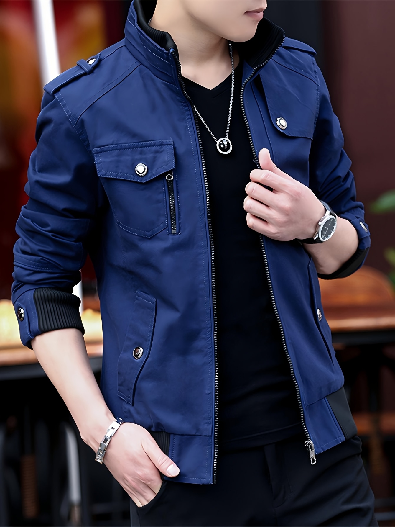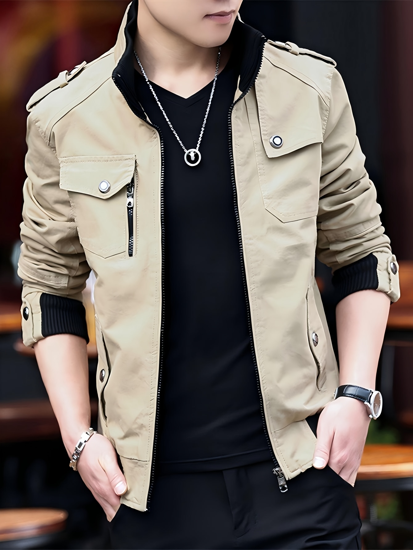 Chaqueta Bomber de Trabajo para Hombre, con Cuello Alto, Múltiples Bolsillos, Estilo Maroon, Cierre con Cremallera, Mangas Largas, Abrigo Casual para Otoño/Invierno, Chaqueta Bomber para Invierno