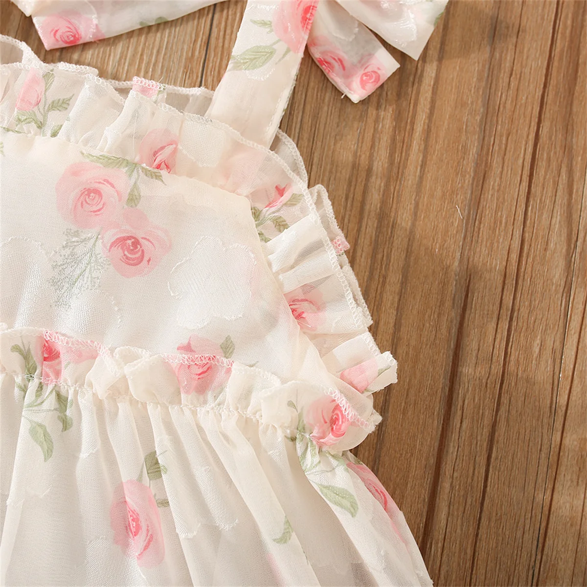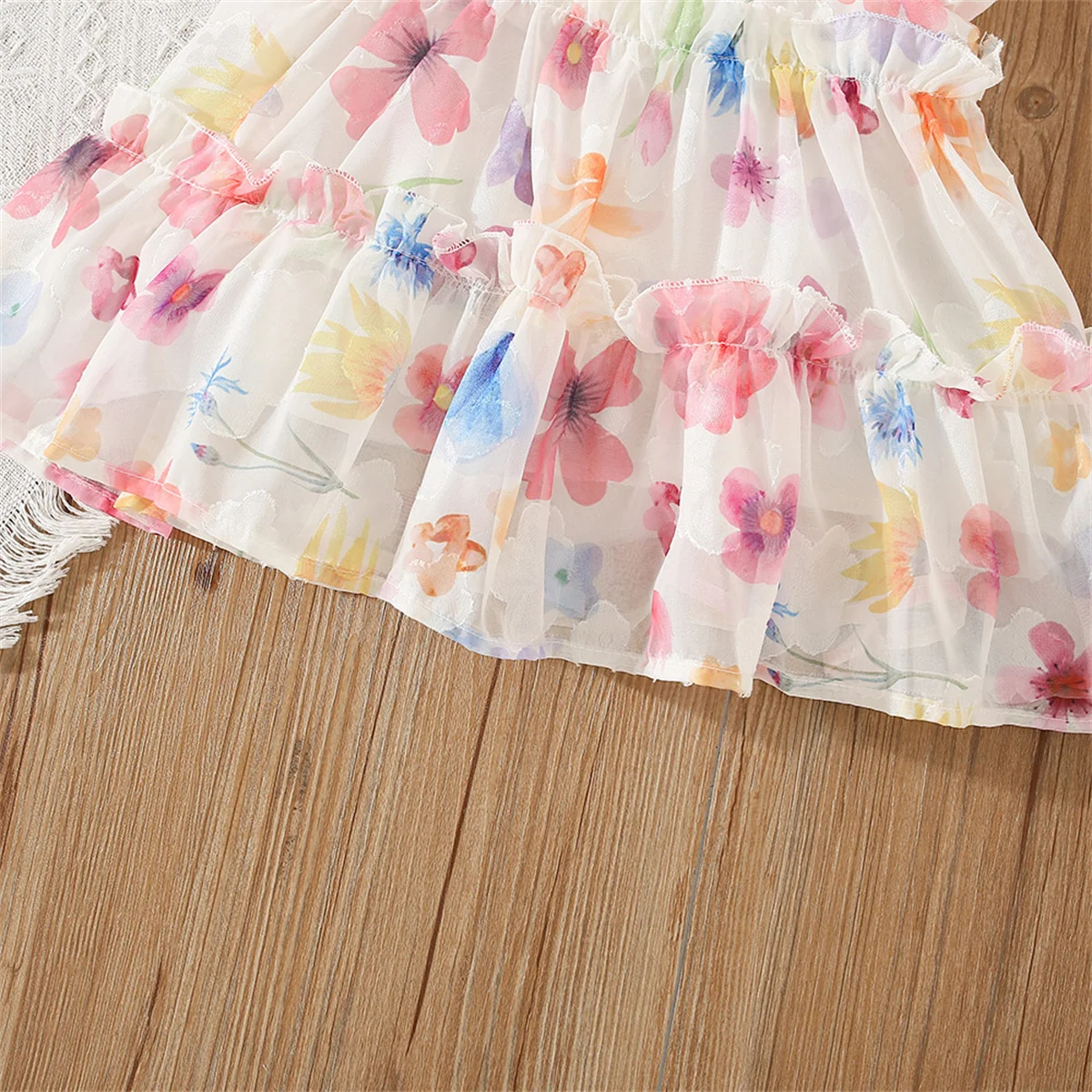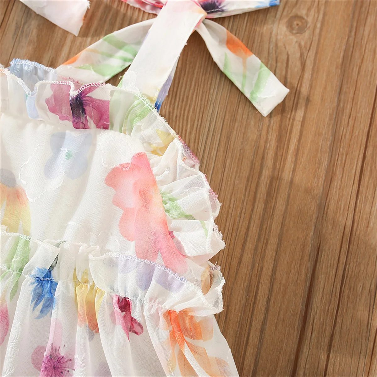 Vestido de verano para niñas, falda de playa fresca de gasa con tirantes, hermosa flor fragmentada, falda sin mangas con lazo a la moda para mujer