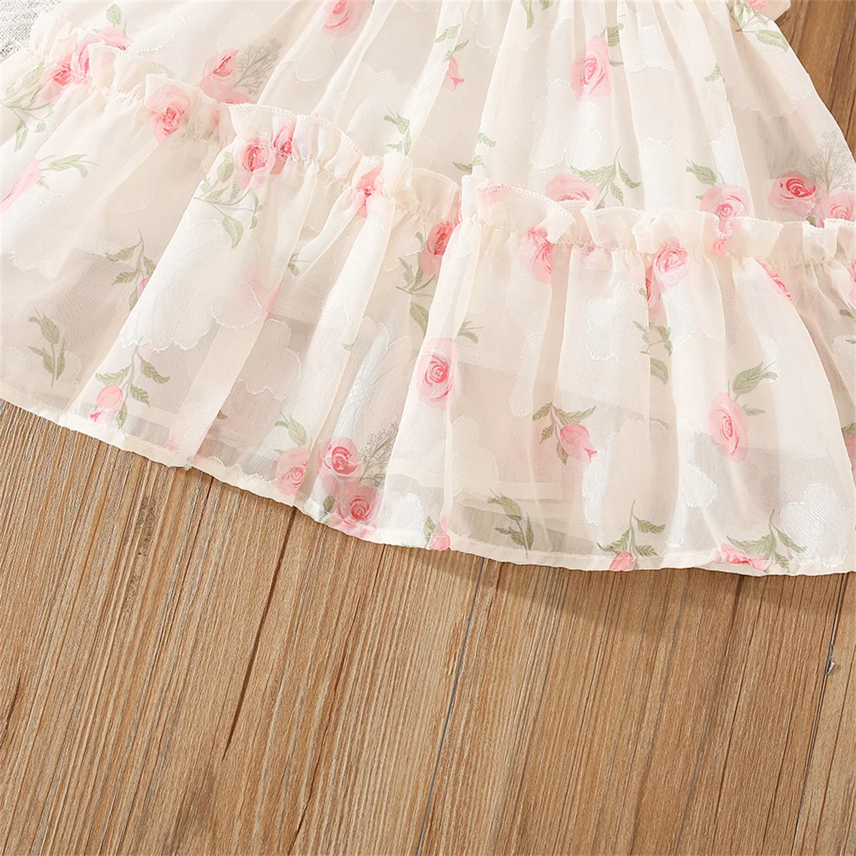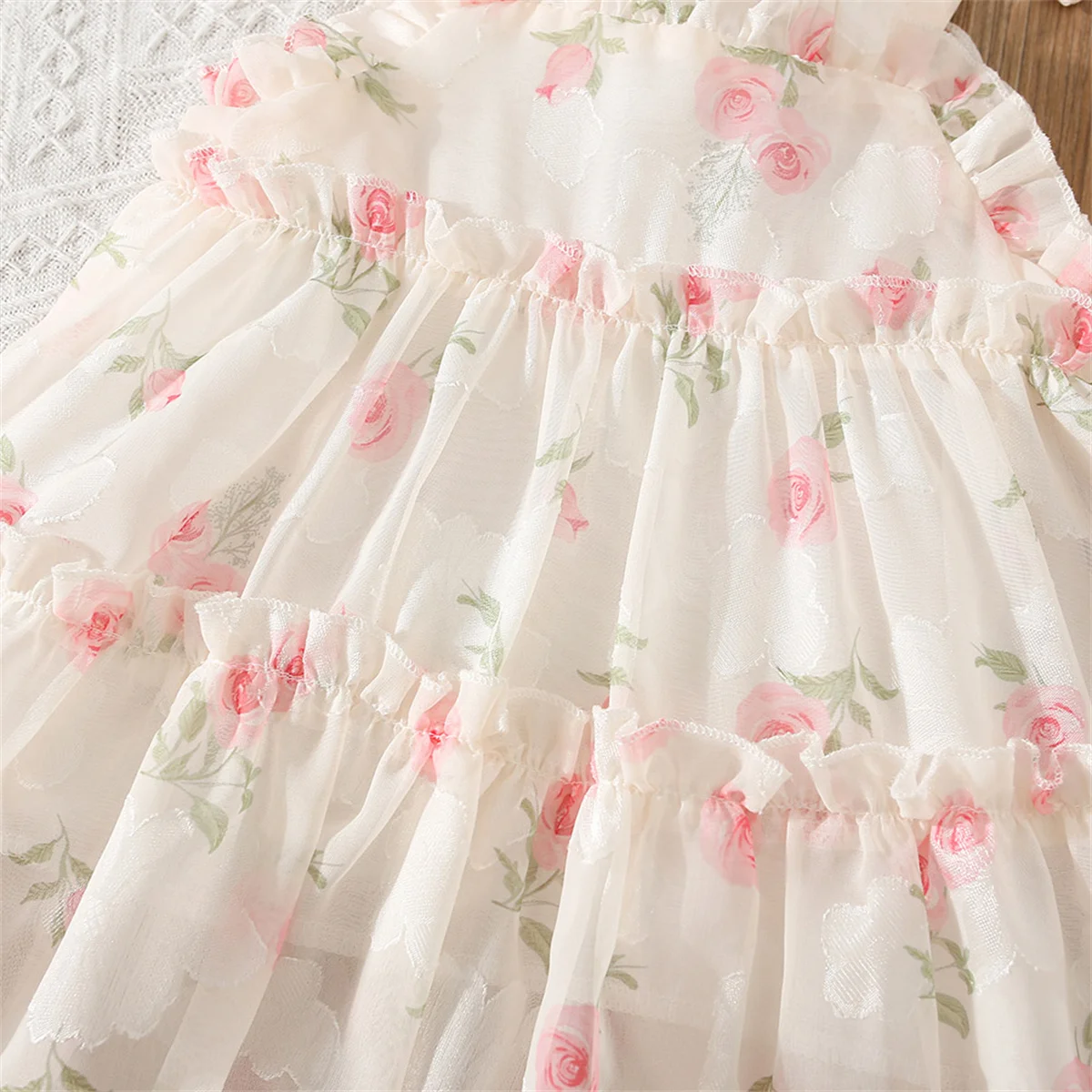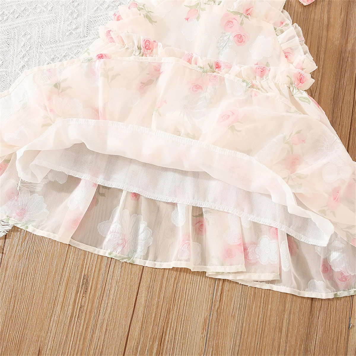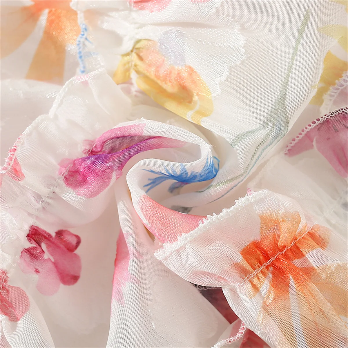 Vestido de verano para niñas, falda de playa fresca de gasa con tirantes, hermosa flor fragmentada, falda sin mangas con lazo a la moda para mujer