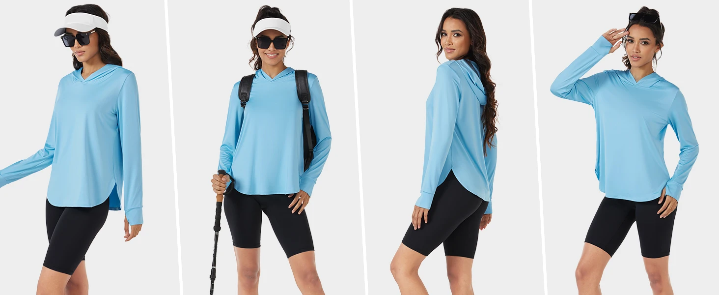 * Diseño con capucha: previene las quemaduras solares en más áreas del cuerpo, adecuado para más condiciones al aire libre.
