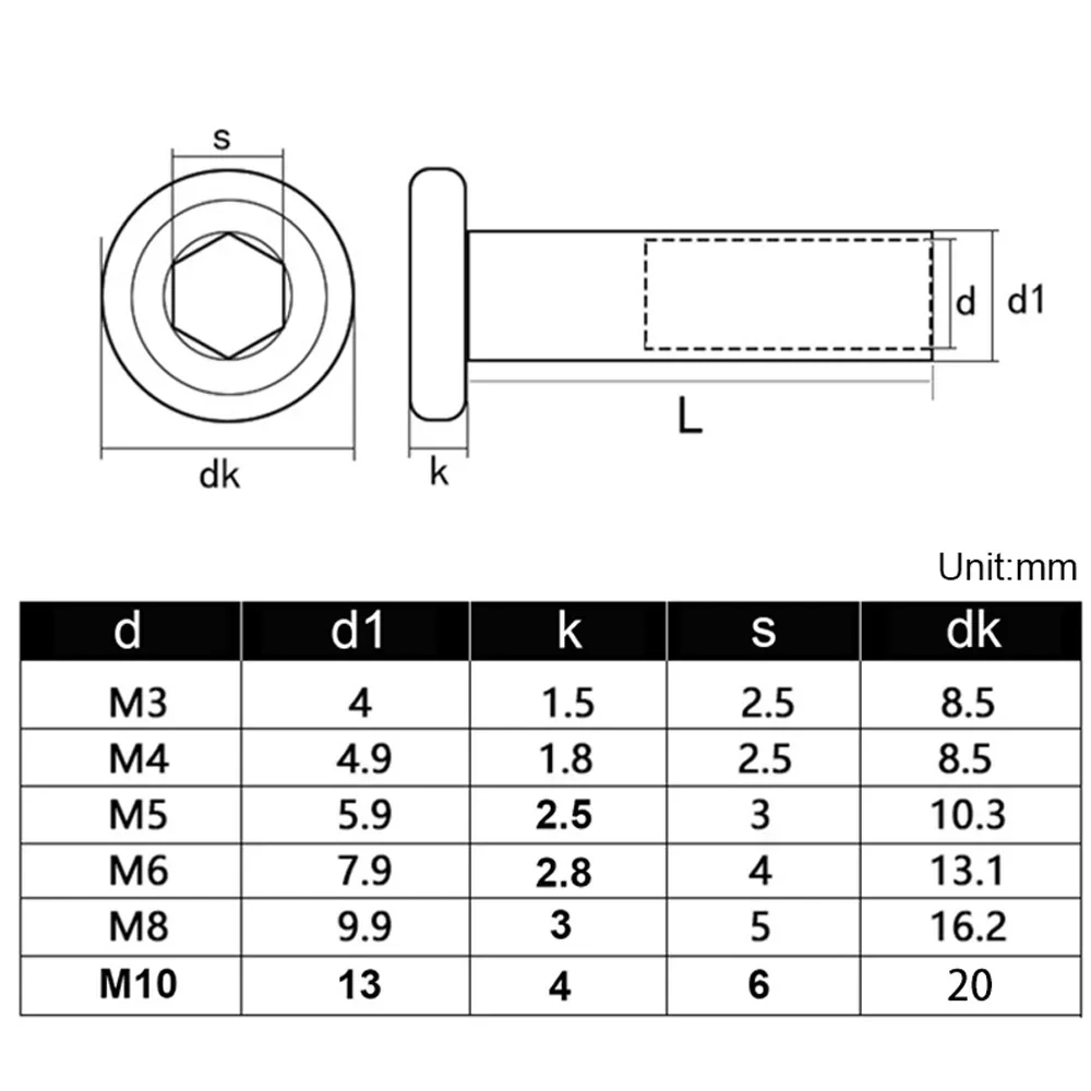 Tamaño: diámetro interior de la rosca (M/d) x Longitud del cilindro (L) x diámetro exterior del cilindro (D1)