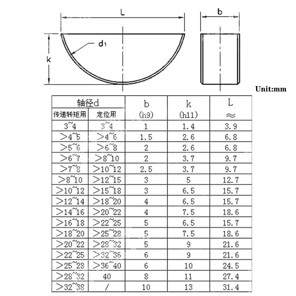 Nombre del producto: 2-50/M2 M2.5 M3 M4, llave de madera de acero al carbono, plana, semicircular, de media luna, de metal, de enlace