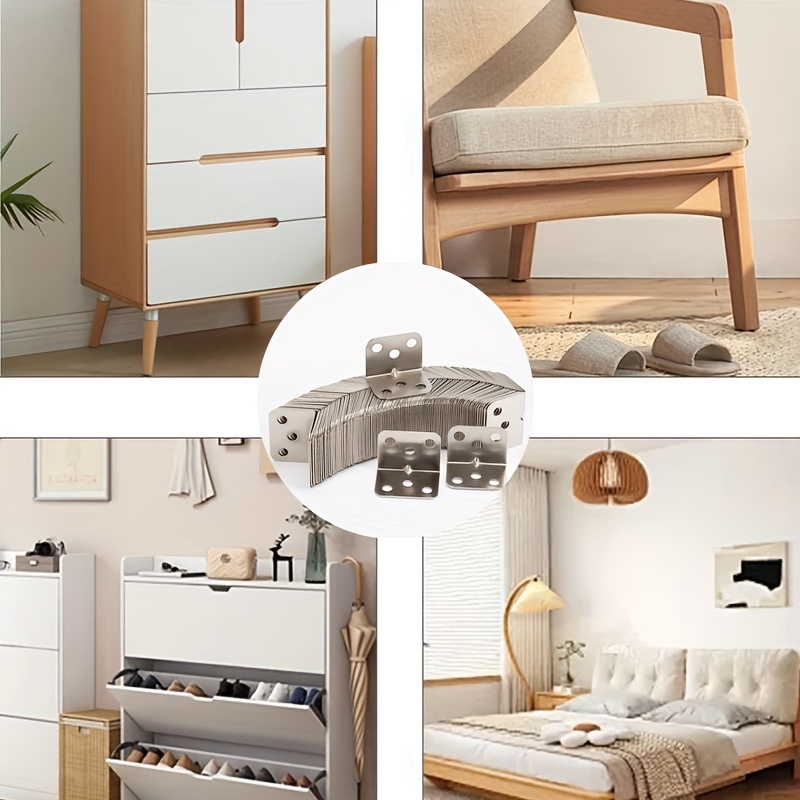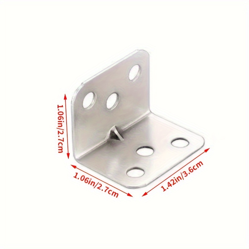 Este resistente artículo, fabricado en acero al carbono, funciona de manera efectiva en condiciones húmedas y tiene una vida útil prolongada. Está construido en acero inoxidable y viene en color plateado. Las dimensiones son 36x27x27mm (1.42*1.06*1.06in) y está disponible en una cantidad de 100 piezas. Este versátil producto se utiliza comúnmente para tareas como soportar estantes, asegurar mesas y sillas, y reparar muebles.