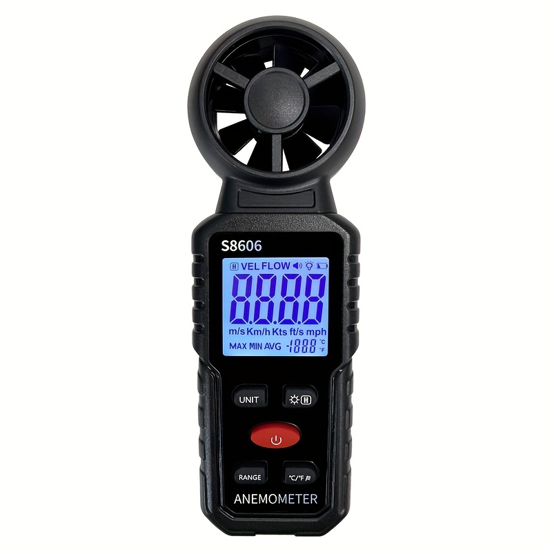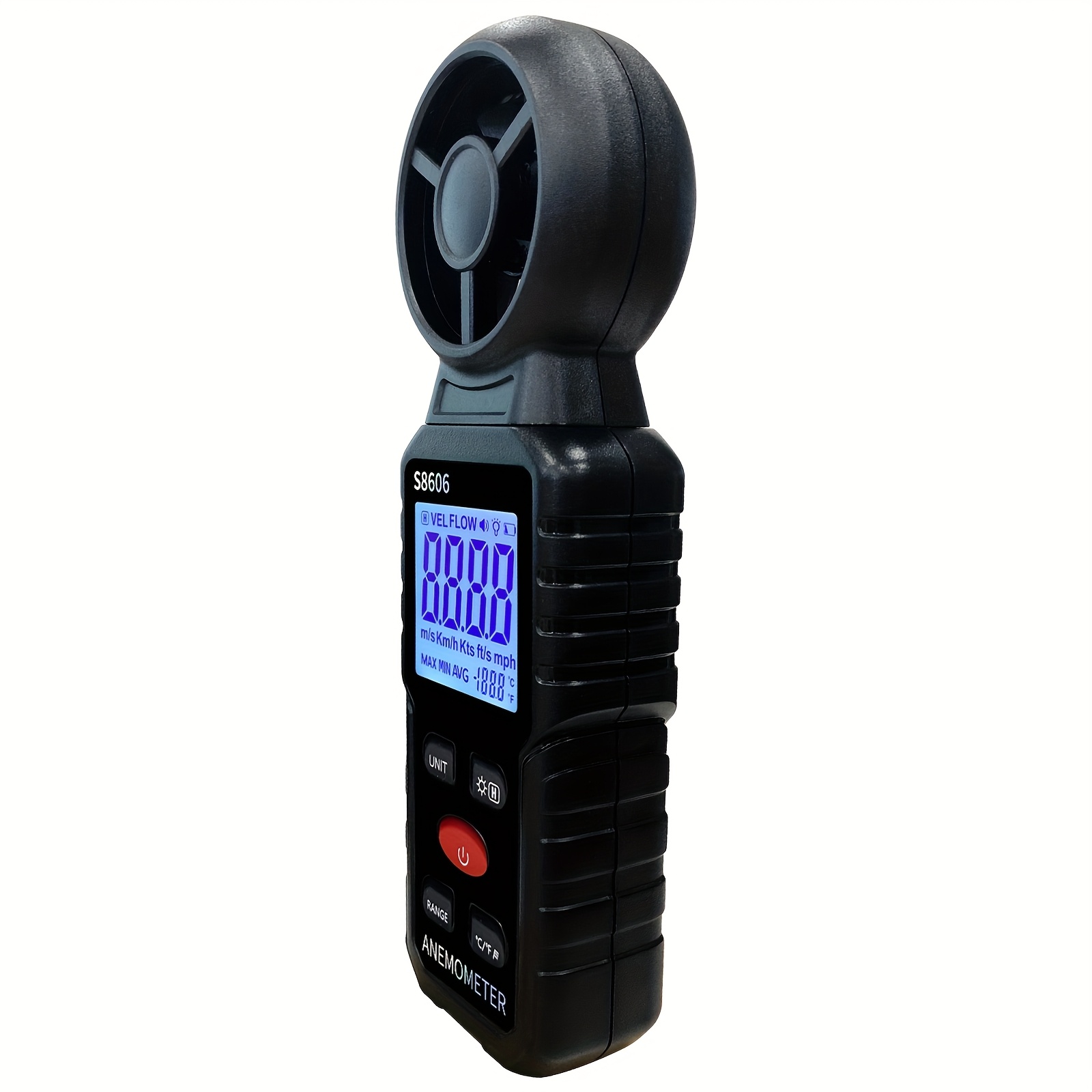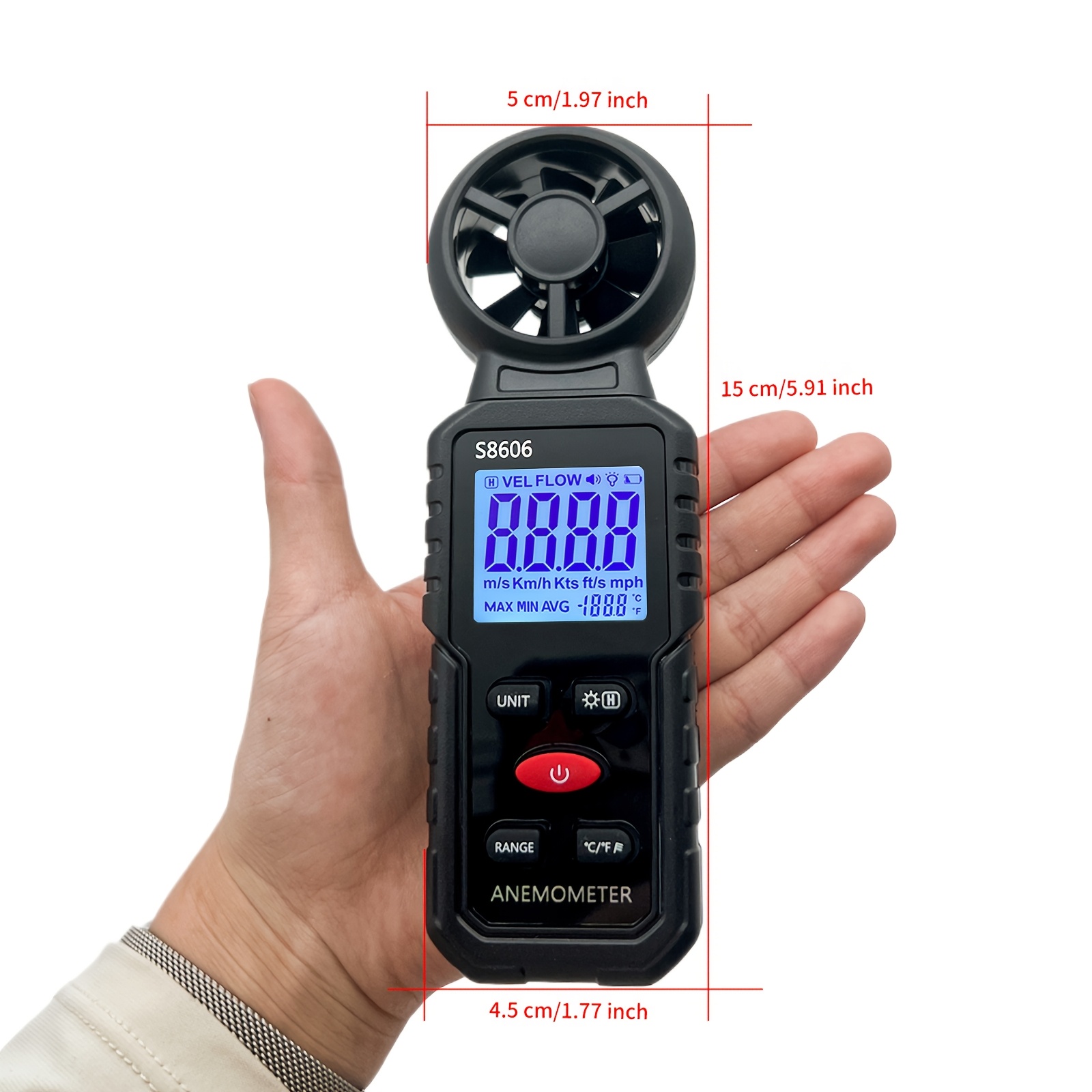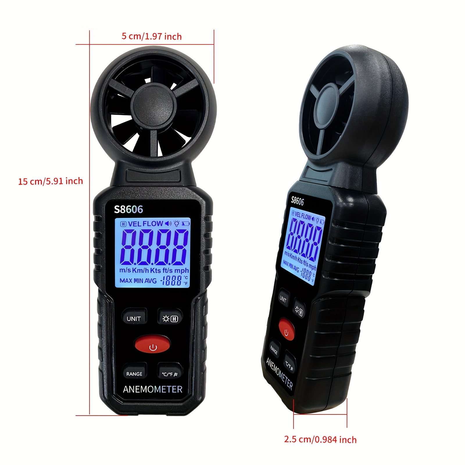 Anemómetro digital portátil para medir velocidad del viento, temperatura y nivel, sin batería