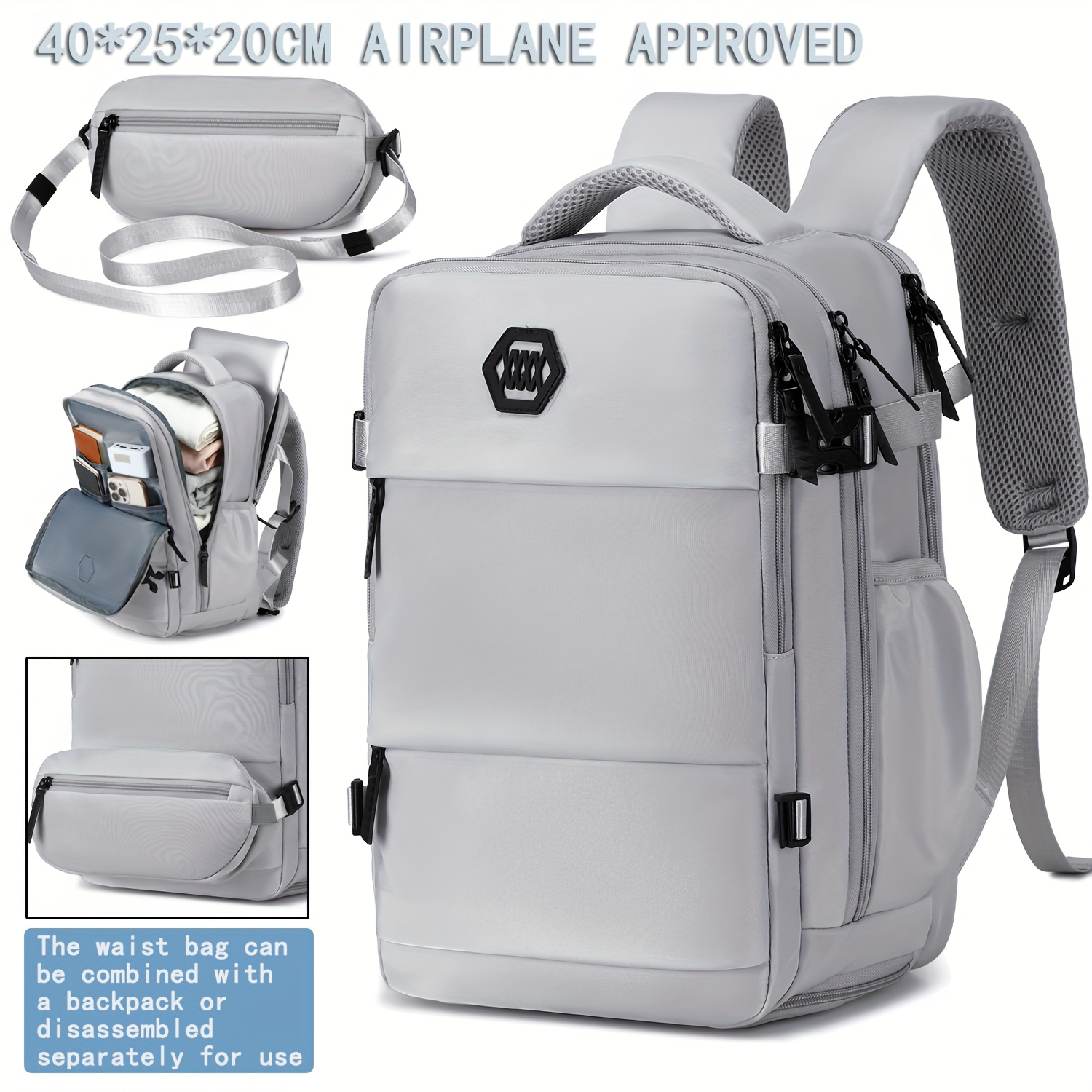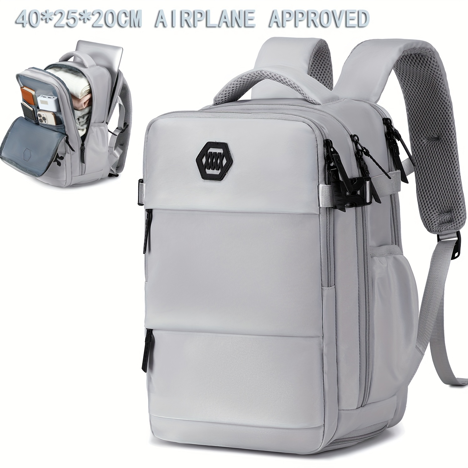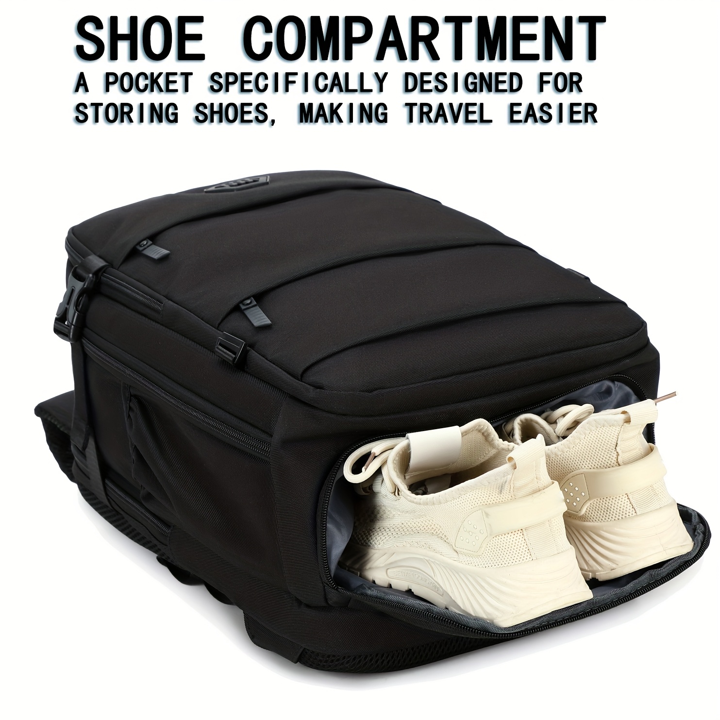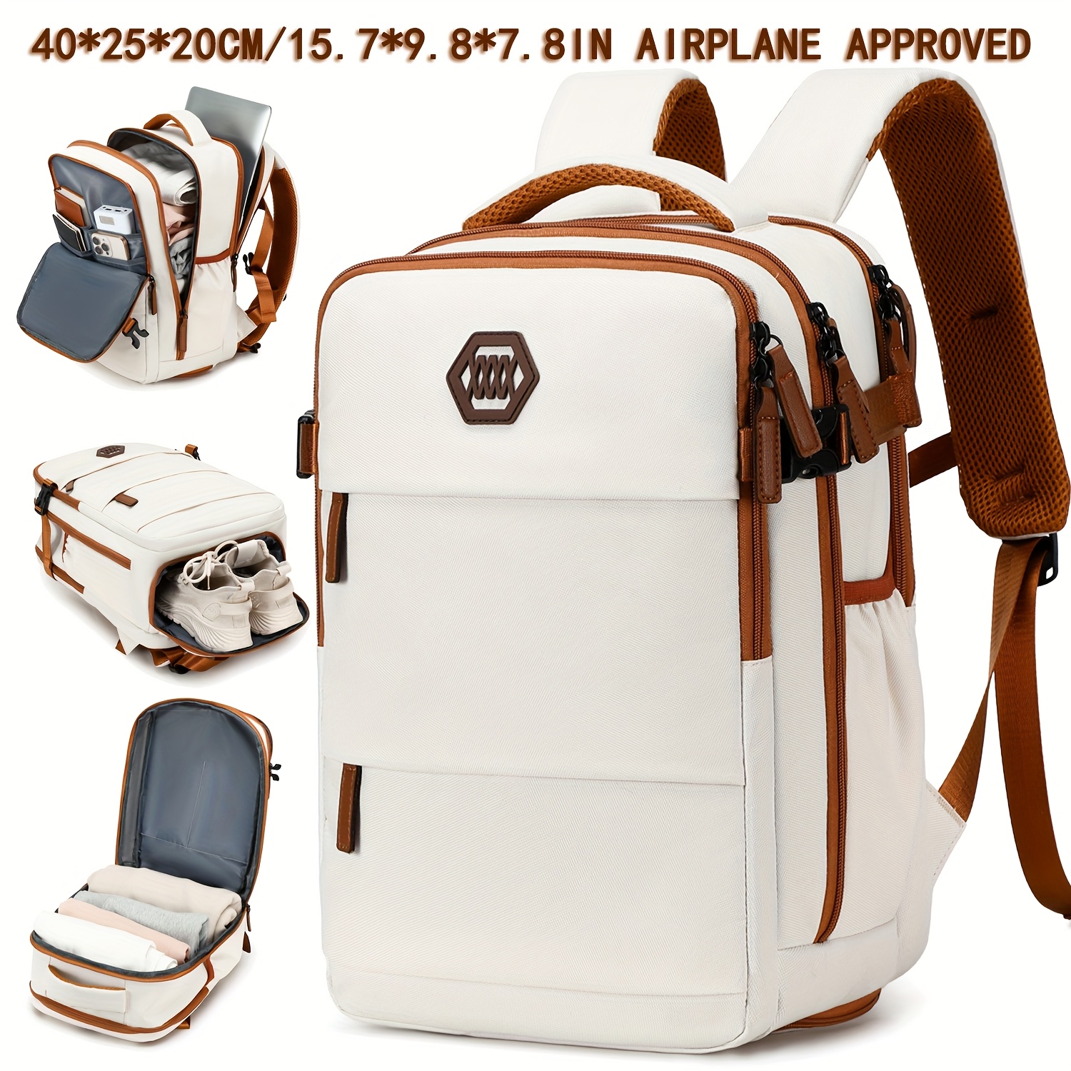 Mochila de viaje ENOSHI aprobada para aeropuerto con compartimento para zapatos y bolsillo para laptop - Bolso para laptop de 38.86 cm, espacio para maleta con ruedas, organizador para viajes, negocios, universidad - Blanco/marrón, cierre de cremallera y bolsillos laterales - Equipaje ligero para hombres y mujeres, maleta para viajar, bolso de viaje de negocios, compartimentos funcionales, costuras resistentes, ideal para viajeros frecuentes