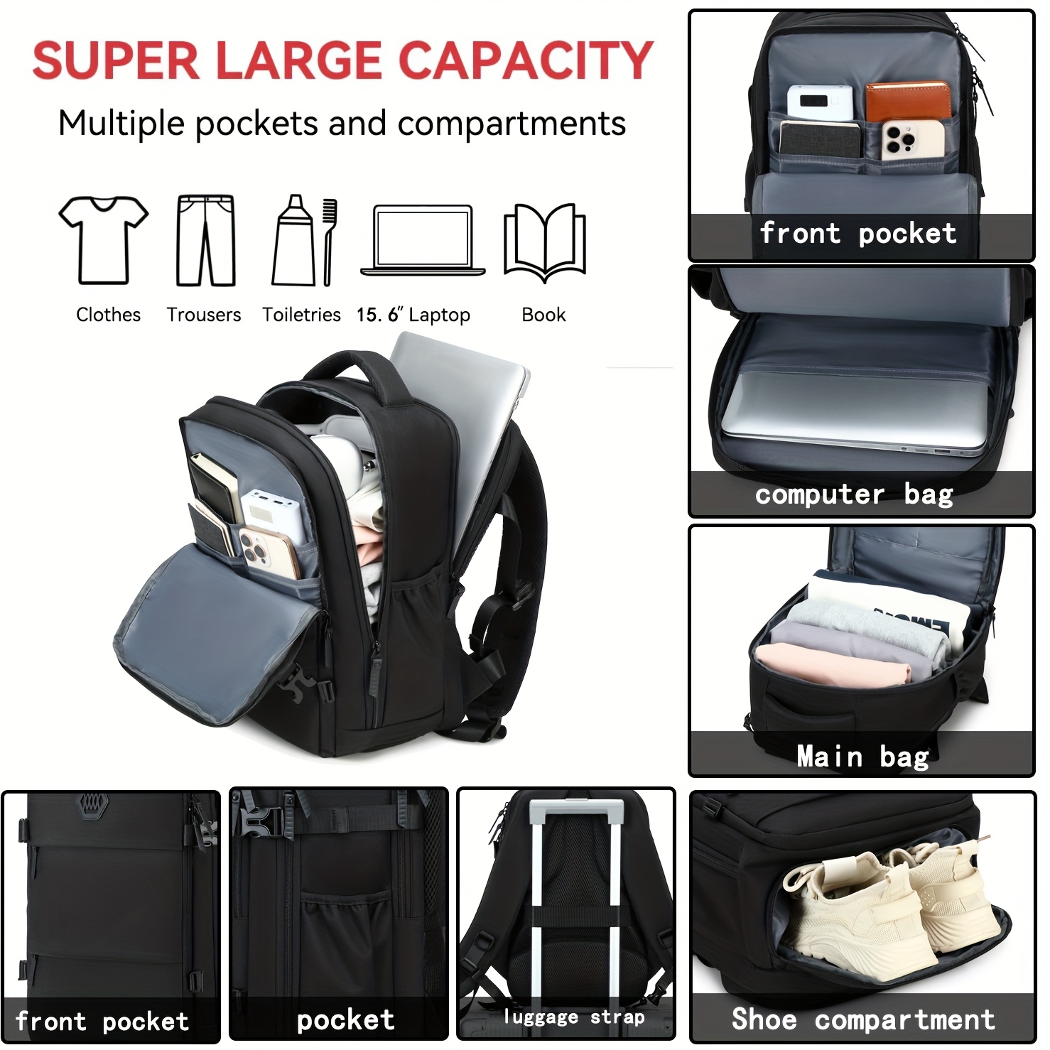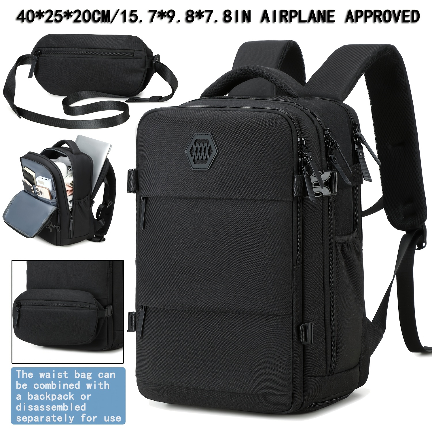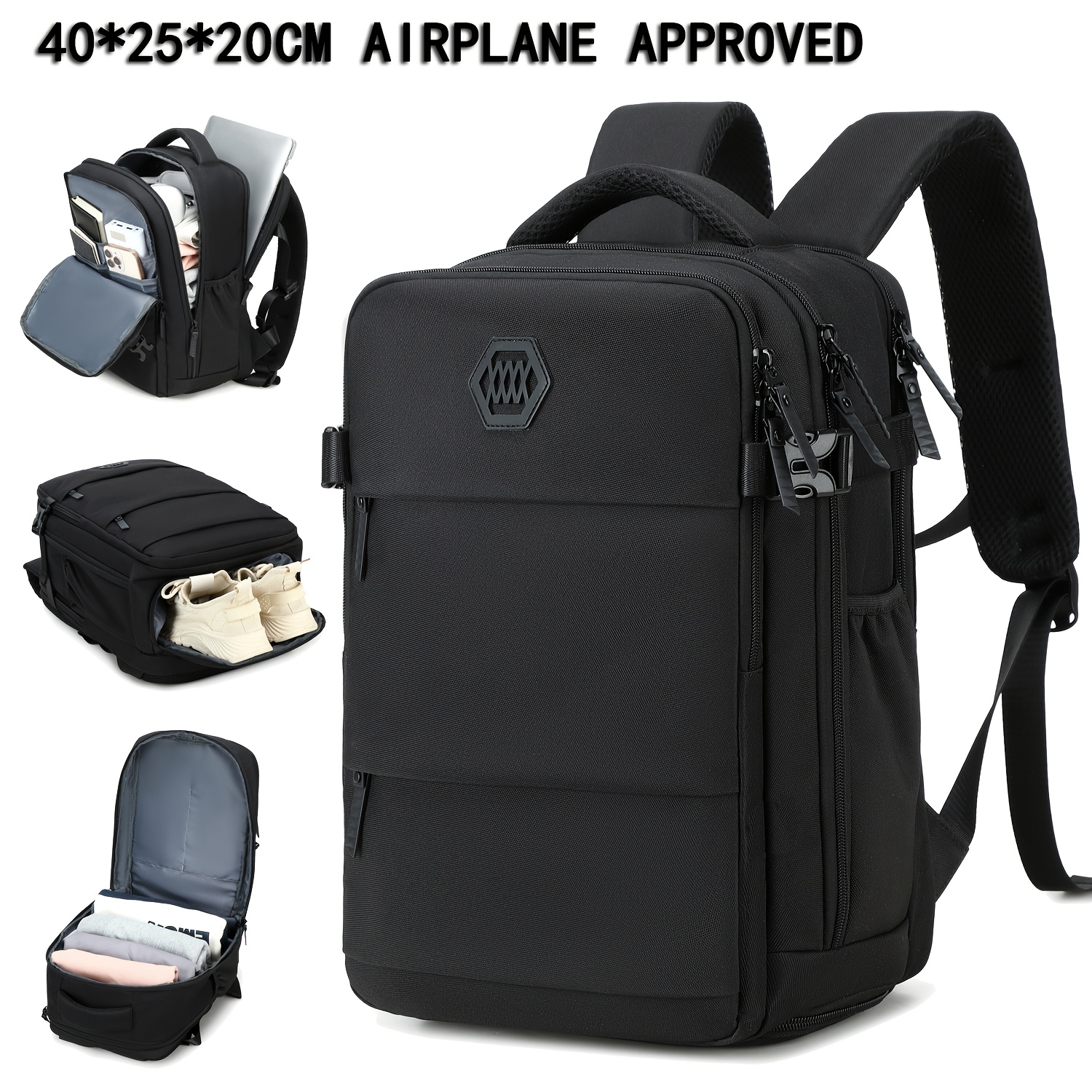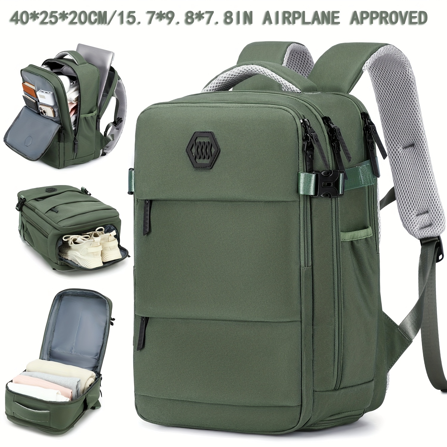 Mochila de viaje ENOSHI aprobada para aeropuerto con compartimento para zapatos y bolsillo para laptop - Bolso para laptop de 38.86 cm, espacio para maleta con ruedas, organizador para viajes, negocios, universidad - Blanco/marrón, cierre de cremallera y bolsillos laterales - Equipaje ligero para hombres y mujeres, maleta para viajar, bolso de viaje de negocios, compartimentos funcionales, costuras resistentes, ideal para viajeros frecuentes