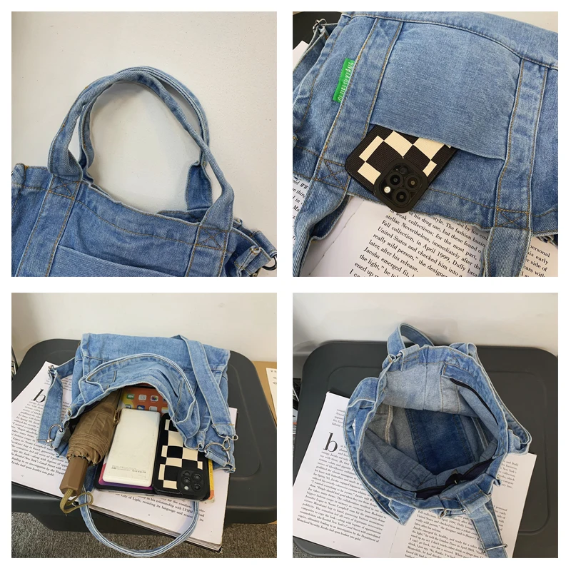 Bolsos de mezclilla para mujer, bolso de hombro grande con cremallera, bolso de compras para Vaqueros, bolso de mensajero de lona, Y2K bolso, bolso ecológico, bolsos Coreanos