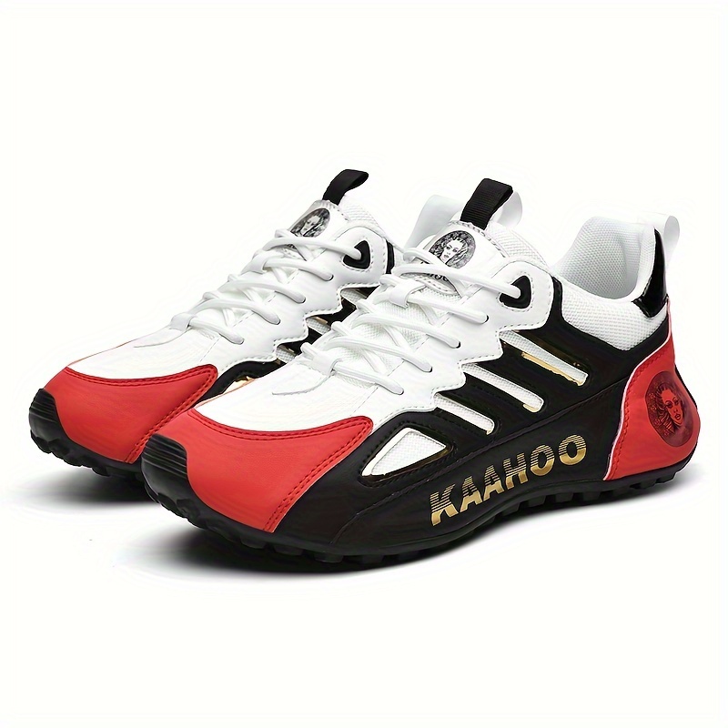 Tenis casuales bajos unisex Dulshaeruo KAAHOO - Ligeros y transpirables de malla y sintético, combinación de colores verde vibrante/rojo/beige/negro, punta redonda cómoda y suela de goma acolchada para caminar, trotar y atuendo casual en primavera/verano, zapatos cómodos, diseño deportivo, construcción duradera, calzado con cordones, moda urbana, forro de tela, calzado versátil, estilo de vida activo