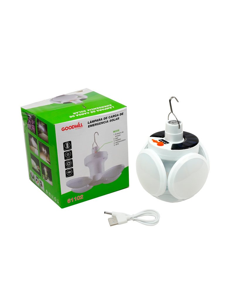 Tiene 2 tipos de recarga, con un cable conectado a la corriente (Incluido) o con panel solar.