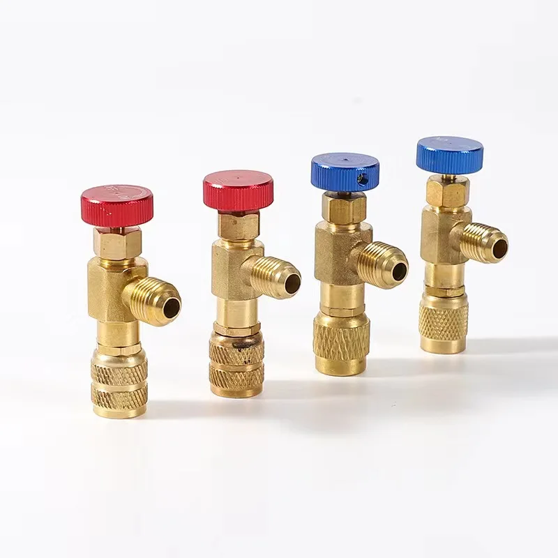 Herramienta de refrigeración R410A R22, adaptador de válvula de seguridad para aire acondicionado, adaptador de cobre de carga de refrigeración con 1/4"